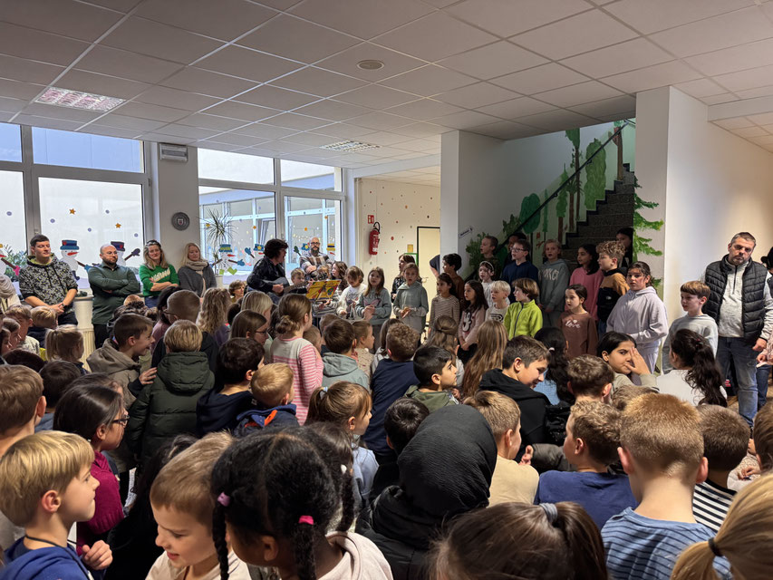 Pünktlich am 1. Dezember versammelten sich in unserem Eingangsbereich alle unsere GrundschülerInnen, LehrerInnen und unsere Schulleitung, um mit weihnachtlichem Singen die Adventszeit einzuläuten. Das funktionierte auch schon prima, was bestimmt auch an unserem regelmäßigen Einüben mit Frau Bruhse lag. Frau Bruhse stimmte auch heute wieder mit ihrem mobilen E-Piano die Lieder “Wieder kommen wir zusammen…“, “Adventskalender" und “Dicke, rote Kerzen“ für uns alle an. Auch an...