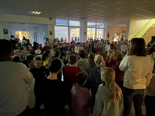 Für das Adventsingen in der Adventszeit übten die Kinder in ihren Klassen drei Lieder.