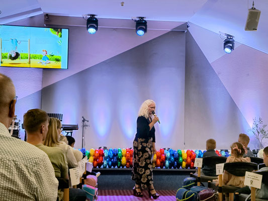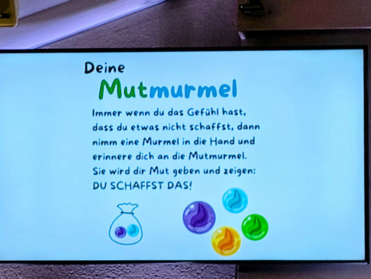 neuen Bilderbuch „Mutmurmeln“ vorlas. Als kleine Überraschung erhielt jedes Kind zwei Mutmurmeln – ein Symbol für Mut und Zuversicht auf dem neuen Weg.