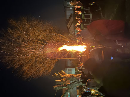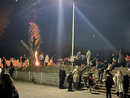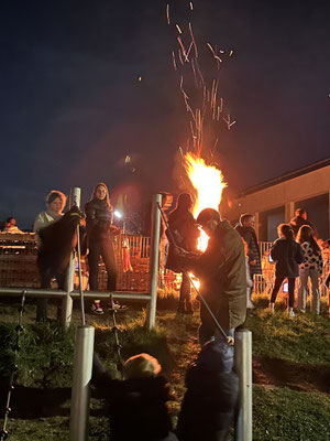 Im Anschluss an den Umzug wurden wir von einem großen Feuer auf dem Sportplatz begrüßt. Nach gemeinsamen Verweilen erfreuten sich der Getränke- und