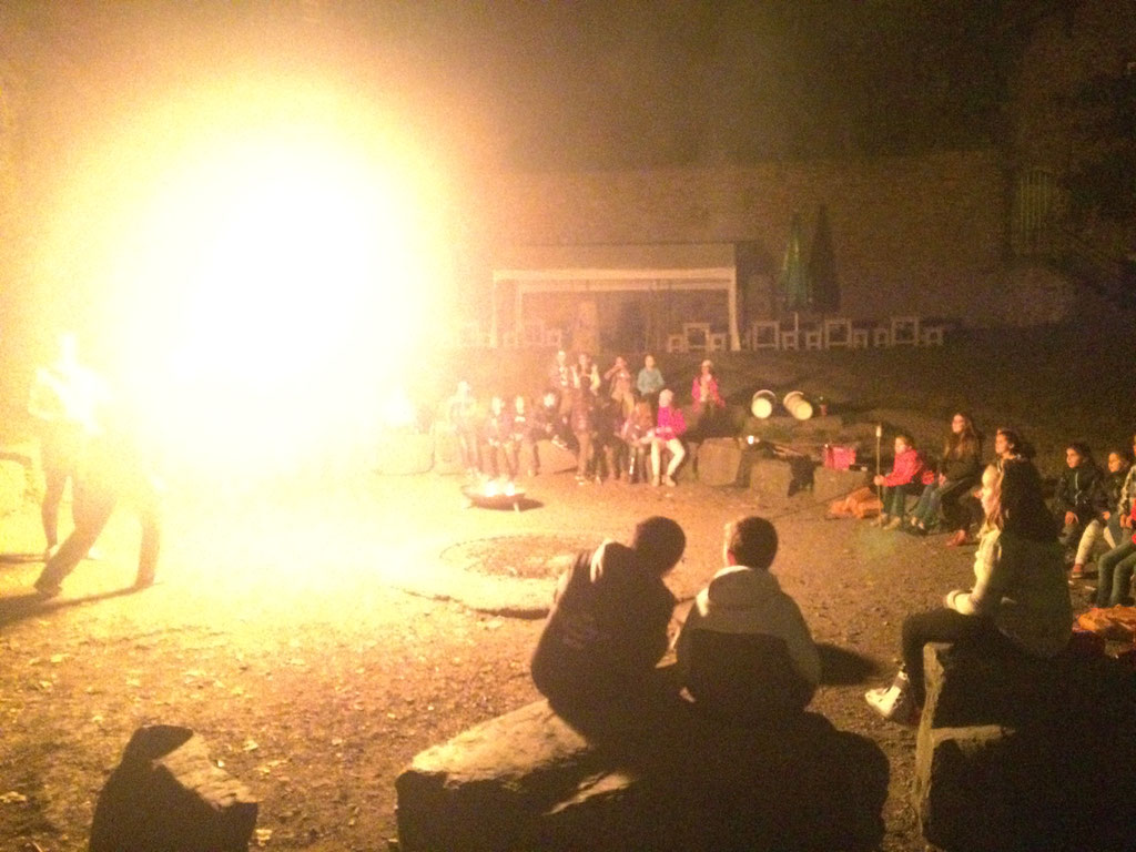 Als wir ankamen sind wir den Berg zur Jugendherberge hochmarschiert. Dann warteten wir darauf, dass wir in unsere Zimmer konnten. Nach dem Essen gab es Programm. Wir haben eine Ralley über die ganze Burg gemacht. Am Abend gab es dann ein Lagerfeuer mit Stockbrot und einer Feuershow.