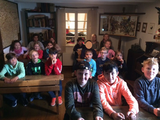 In dem Heimatmuseum haben wir alte Waffen und einen Klassenraum von früher gesehen.