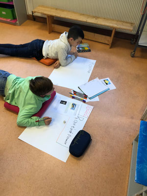Nach der Informationssuche konnte überall im Klassenraum gearbeitet werden. Es sind tolle Plakate entstanden, die später vor der Klasse vorgestellt wurden.