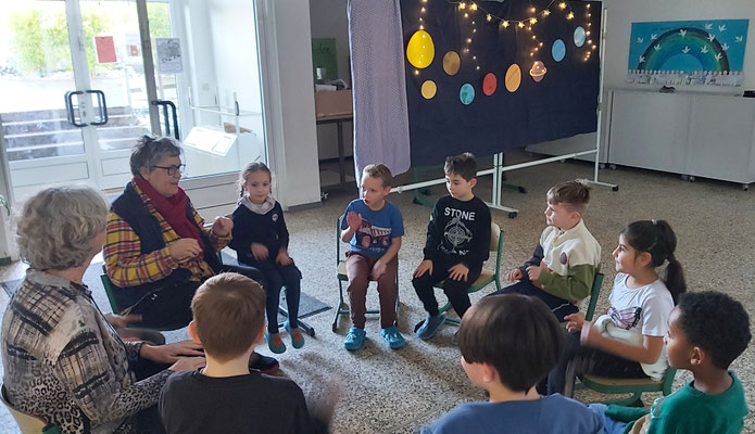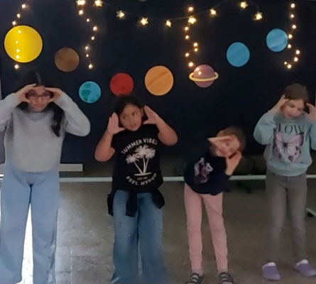 Nach einer herzlichen Begrüßung starteten wir alle gemeinsam mit dem Gute Laune Lied. Unterhaltsam ging es mit dem Klatschspiel „Flug ins All“ und anschließend mit dem Tanz „Spaziergang durch das Weltall“ weiter. So machten wir gemeinsam mit viel Freude eine kleine Reise ins und durch das Weltall.