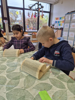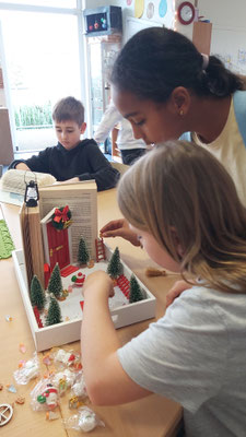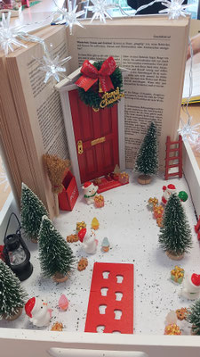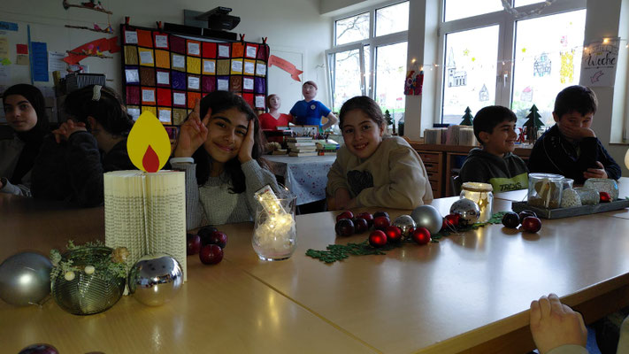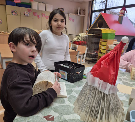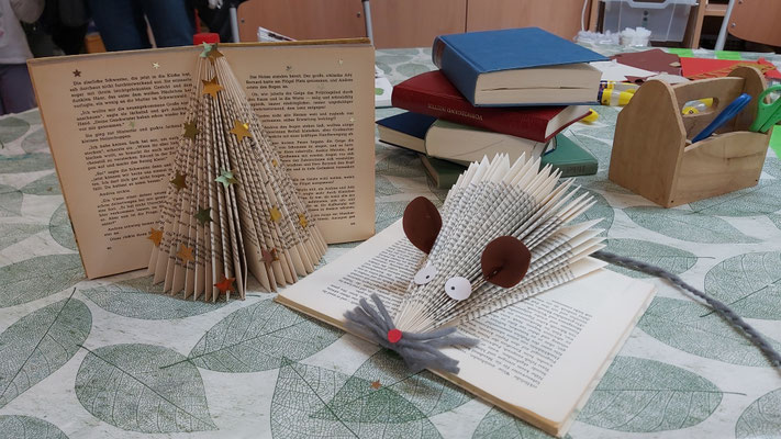 Weiter ging es in der Schule mit der winterlichen Weihnachtwerkstatt, wo Eltern und Kinder gemeinsam wunderbare Dinge basteln konnten. In der OGS falteten die Kinder mit ihrer Begleitung aus alten Büchern Weihnachtsbäume, Kerzen und Weihnachtsmäuse. Ein wunderschöner Tag ging um 18:00 Uhr zu Ende.