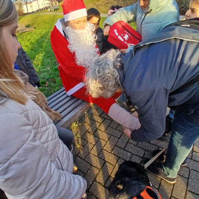 Knut fand den Nikolaus mit einer Beinverletzung im Bergpark. Der Nikolaus bekam von Frau Liesen einen Verband und wurde dann sicher von den Kindern in die OGS begleitet.