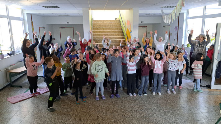 Am 16. Mai 2025 haben wir unser neues Friedenshaus in der Schule feierlich eingeweiht. Viele Gäste waren dabei, und unsere Ehrengäste wurden von den Kindern namentlich begrüßt. Bürgermeister Matthias Thul und Fachbereichsleitung der Stadt Bergneustadt Frau Adolfs, sowie Pastor Bersch, die Abteilungsleitung des Caritasverbandes Katja Giesen, weitere Mitarbeiter des Caritasverbandes Frau Kühr-Hohnermann, Frau Forsting, Frau Hoppe, Frau Eigendorf, Schulleitung Alexandra Stahl-Hochhard, Lehrer und Lehreinnen wurden herzlichst benannt. Nach einer kurzen Ansprache von Frau Kaulisch begann die Feier mit einem schönen Tanz, der musikalisch von Familie Rink begleitet wurde.