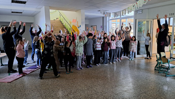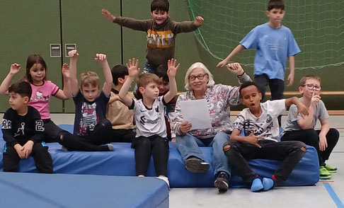 Unsere OGS beteiligte sich am bundesweiten Vorlesetag. Wir gingen gemeinsam mit den Kindern in die Turnhalle, in der Sabine die spannende Bewegungsgeschichte „Wir fliegen ins Weltall“ vorlas. Alle Kinder hörten gespannt und interessiert zu.