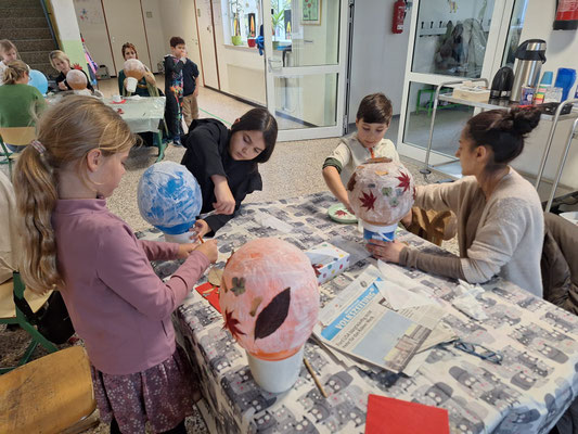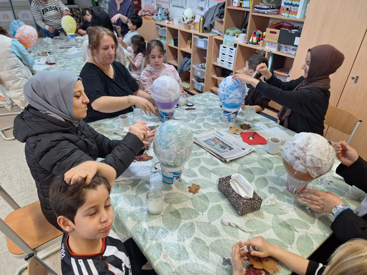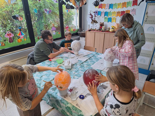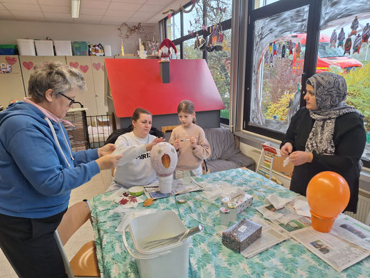In entspannter Atmosphäre fertigten Eltern und Kinder wunderschöne Tischlaternen aus Papier, Kleister, gepressten Herbstblätter und getrocknete Blüten an.