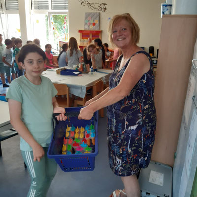 Ein besonders wertvoller Aspekt der OGS ist die Kreativität, die zurzeit in den selbstgebastelten Spielen der Kinder zum Ausdruck kommt. Nachdem die Spielschränke ausgeräumt waren, wurde zu Scheren, Papier, Bechern, Kartons, Stoffen, Gummis, Farben und vielen weiteren Materialien gegriffen, um ganz eigene Spiele zu basten.