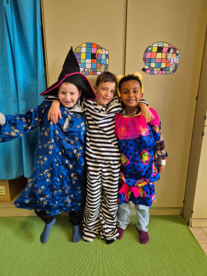 Die Kinder der OGS feierten in allen vier Gruppen ein fröhliches Karnevalsfest. Mit großer Begeisterung nahmen die Kinder an abwechslungsreichen Spielen teil, zeigten ihre Verkleidungen in einer Modenschau und tanzten und sagen zu mitreißenden Liedern in der Kinderdisco. Auch für das leibliche Wohl war bestens gesorgt: Waffeln, Zuckerwatte, Popcorn, Getränken, Obst und Gemüse, zahlreiche Kamellen und süße Naschereien trugen zu einer guten Stimmung bei.