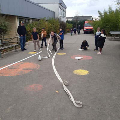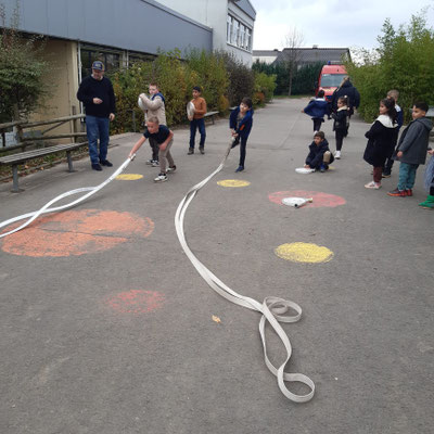 Parallel zur Bastelaktion gab es draußen eine Ergänzung für Kinder, deren Eltern nicht teilnehmen konnten oder die lieber sportlich aktiv sein wollten. Feuerwehrschlauchwurf wurde vom Feuerwehrmann Florian angeboten, das Bewegung und zusätzlich Spaß in den Tag brachte.