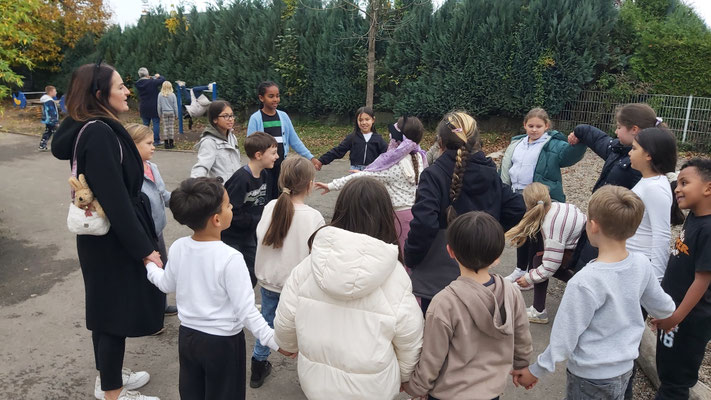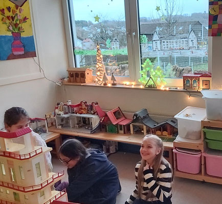 Ein großes Dankeschön geht an Frau Hoppe, die gemeinsam mit uns das Friedenshaus geplant und durch die „Aktion Neue Nachbarn“ des Caritasverbandes finanziert hat. Ebenfalls danken wir Lilia, die liebevoll viele Waffeln für alle gebacken hat, sowie dem Hausmeister der Schule und Herrn Kaulisch, die gemeinsam das Haus aufgebaut haben. Außerdem bedanken wir uns herzlich bei den Praktikantinnen der Fachschule für Sozialpädagogik aus Dieringhausen, die die Friedenszone im Außenbereich mitgestaltet und Materialien vorbereitet haben, damit die Kinder gut miteinander sprechen können, auch wenn mal Streit entsteht.
