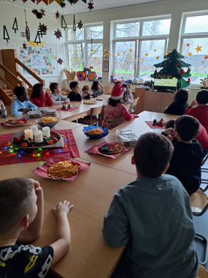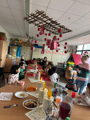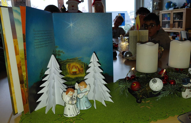Es wurden weihnachtliche Lieder gesungen, passende Spiele gespielt, Leckereien genossen und die Weihnachtsgeschichte entweder erzählt, vorgelesen oder als Film präsentiert.