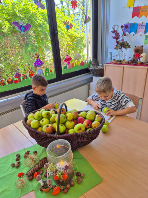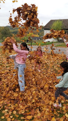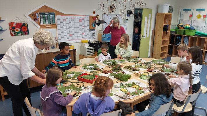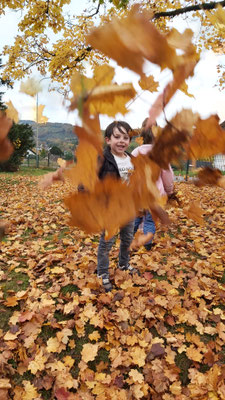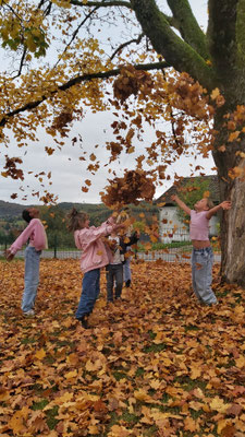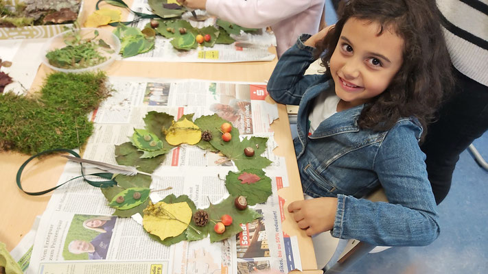 Die Blätter verändern ihre Farbe und an anderen Bäumen sind ebenfalls Früchte zu sehen, aus denen wir viele Bastelideen umsetzten.