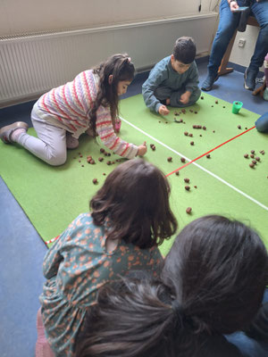 Die Kinder sind besonders stolz, wenn ihr selbstgemachtes Spiel funktioniert und ihren Freunden gefällt. Dieses wunderschöne Projekt wird uns noch eine Zeitlang mit großem Eifer begleiten.