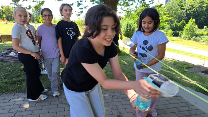 Im Mittelpunkt standen außerdem viele spielerische Angebote. Die OGS bot ein Spiegelspiel sowie zwei weitere Geschicklichkeitsspiele an, die allen Beteiligten Spaß machten. Es war ein großartiges Fest, das Kinderrechte sichtbar machte und alle gemeinsame Freude schenkte.