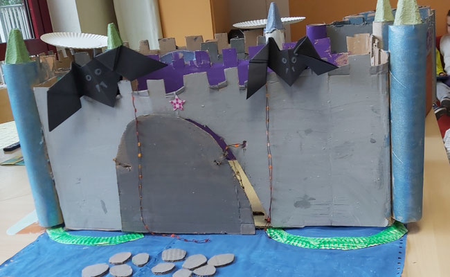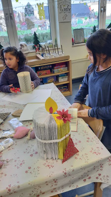 So entstanden mit viel Freude und Kreativität bunte, fantasievolle Häuser aus verschiedenen Kartons, verziert mit goldenen Zwiebeltürmen und unsere jungen Talente konnten ihrer Fantasie freien Lauf lassen.