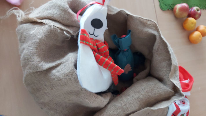 Der Nikolaus brachte am Freitag die Socken, die er schon am Montag abgeholt hatte, wieder in die OGS. Die Kinder staunten, denn die Socken waren prall gefüllt! Bei einer gemütlichen Feier mit Legenden, Spielen und Liedern bekamen sie ihre Socken überreicht und strahlten vor Freude.