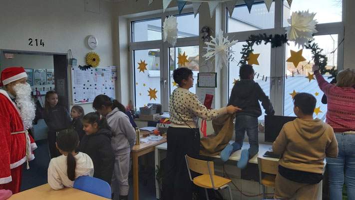 In der OGS wirkte Nikolaus erleichtert. Mit Hilfe der Kinder und Mitarbeiter holte er die Socken von der Leine, um sie bis Freitag zu füllen und zurückzubringen. Danach wurde er abgeholt. Die Kinder sind nun voller Vorfreude und Neugier.