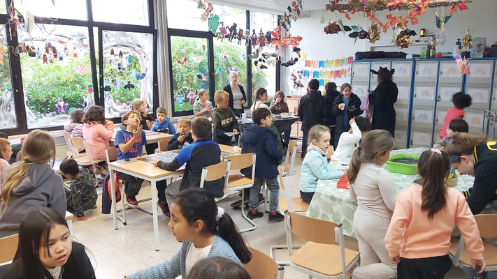 Das Ergebnis des Projektes war eine farbenfrohe Ausstellung, die die Begeisterung und das künstlerische Können der Kinder widerspiegelte. Eifrig wurden diese von Eltern und anderen Familienangehörigen bestaunt.