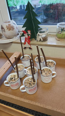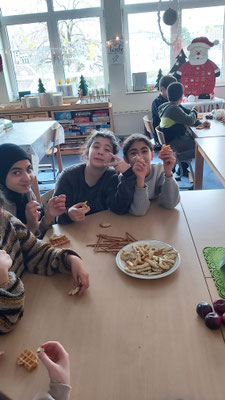 Nach der Aufführung überreichten die Kinder den Mitarbeitenden kleine selbst gestaltete Geschenke, die den Dank und die Wertschätzung zum Ausdruck brachten. Unsere Mitarbeiter zeigten sich begeistert und danach luden die Kinder alle zu warmen Getränken, Waffeln und Gebäck ein.