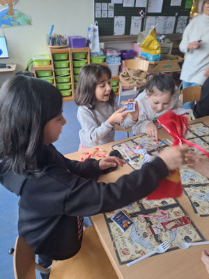 Die Feier begann mit der biblischen Geschichte aus unserem Erzählkoffer. Danach besprachen wir gemeinsam die Bedeutung der Osterhasen mit den bunten Eiern sowie verschiedene Osterbräuche. Zudem wurde erklärt, warum Ostern jedes Jahr an einem anderen Datum gefeiert wird.