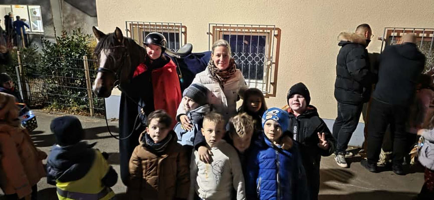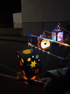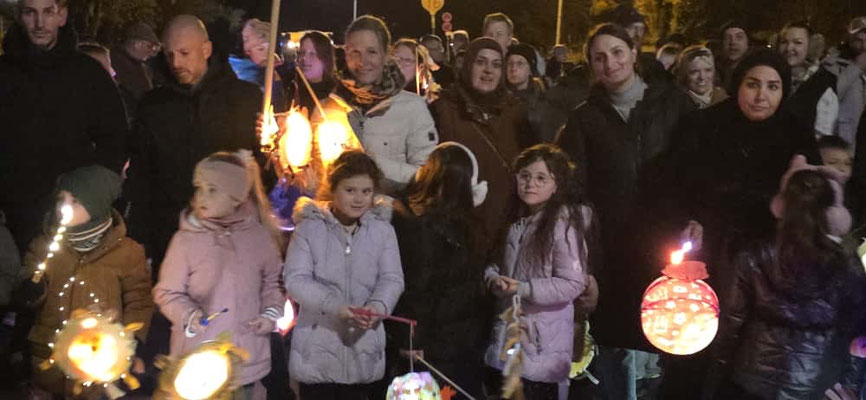 Mit Einbruch der Dunkelheit durften die Löwenkinder stolz ihre selbstgebastelten Laternen tragen und in der ersten Reihe hinter St. Martin herlaufen.