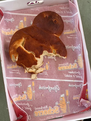 Zuerst teilten wir den großen Stutenmann – 28 Kinder und ihre Lehrerin – natürlich nach gründlichem Händewaschen. 😉